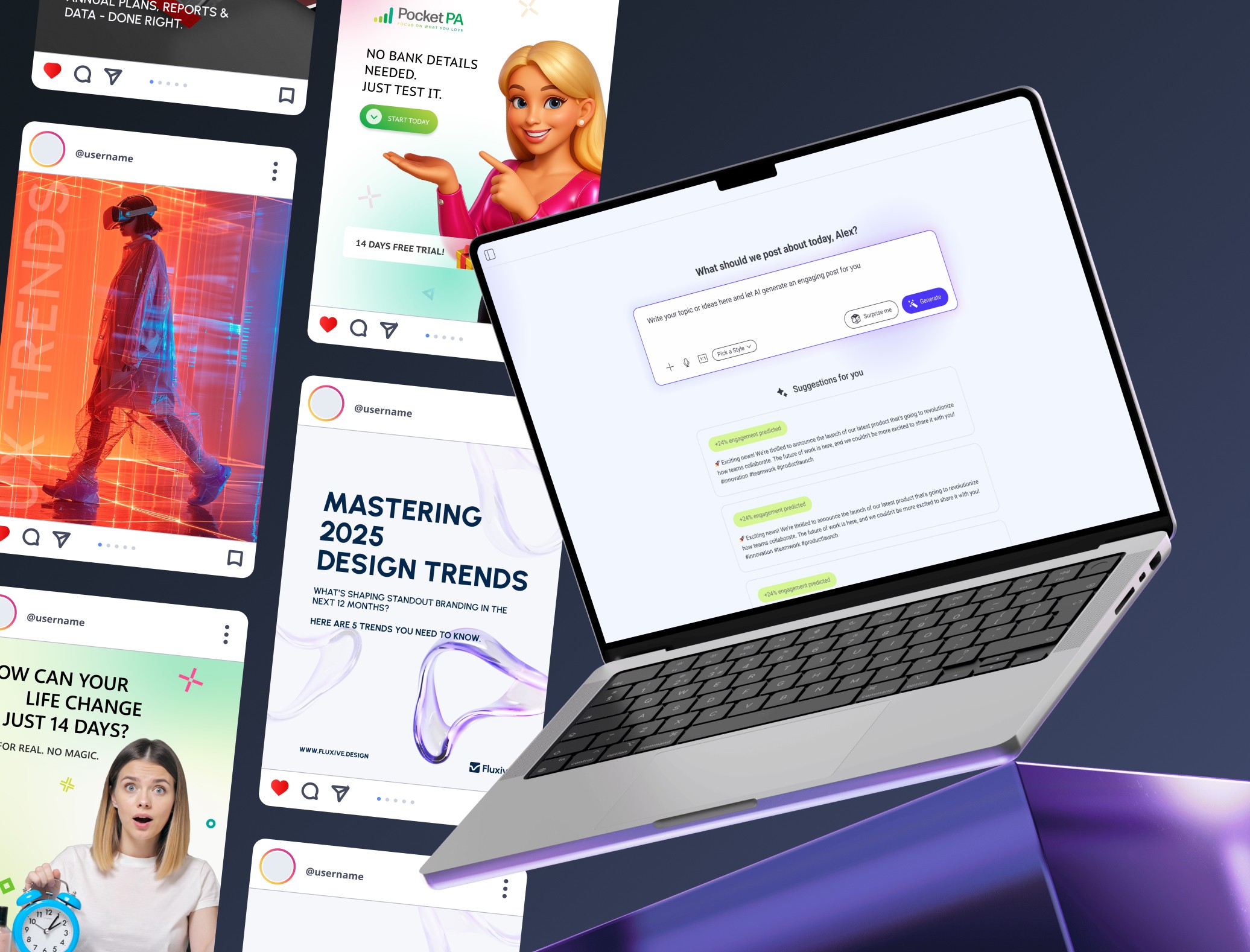 From idea to post in under a minute.